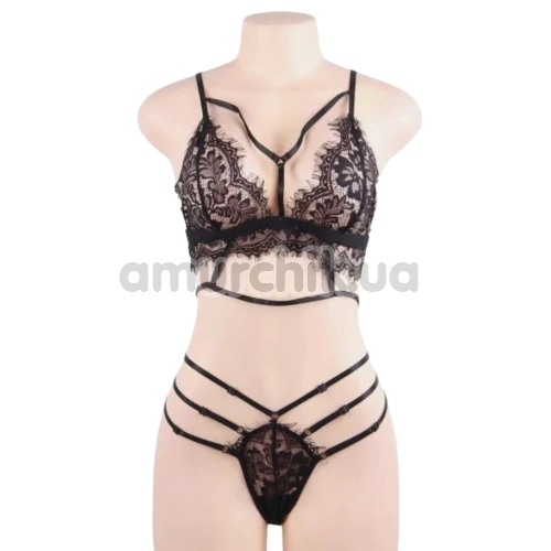 Комплект Star Night Summer Garden Lingerie Set, черный: бюстгальтер + трусики-стринги + пояс для чулок
