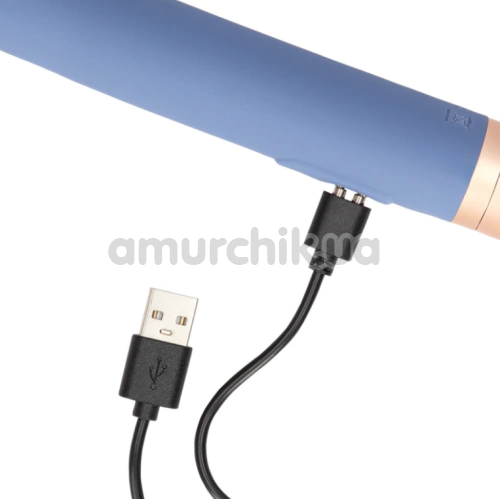 Вибратор с емкостью для лубиканта Loveline Travel Vibrator With Lube Compartment And Pump, синий