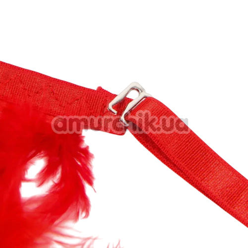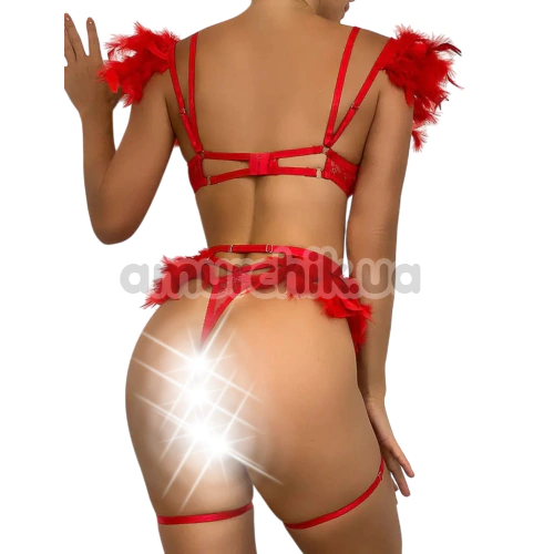 Добавить отзыв о Комплект Star Night Sensual Feather & Chains, красный: бюстгальтер + трусики-стринги + пояс для чулок + гартеры, оставить комментарий, задать вопрос