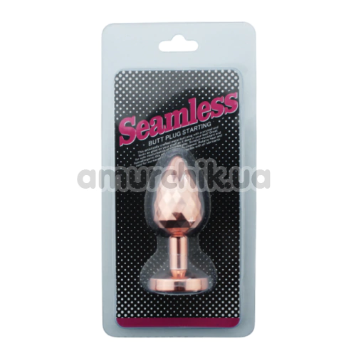 Анальна пробка з чорним кристалом Seamless Butt Plug Starting Small, рожево-золота