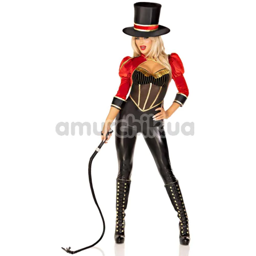 Костюм циркачки Leg Avenue Circus Ringmaster Diva Catsuit, червоно-чорний: комбінезон + циліндр