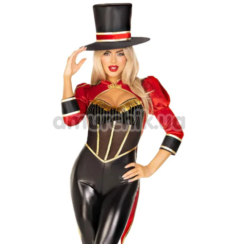 Костюм циркачки Leg Avenue Ravishing Ringmaster Bodysuit, червоно-чорний: боді + головний убір