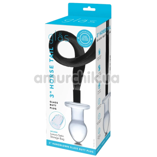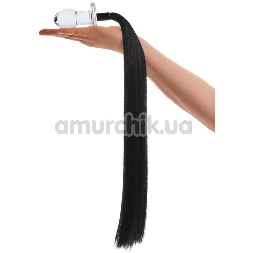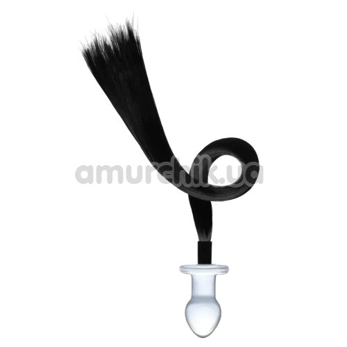 Анальна пробка з хвостом Glas Handblown Glass Butt Plug Horse Tail 3, прозора