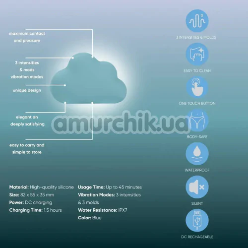 Кліторальний вібратор Sweet Em Velvet Lure Cloud, блакитний