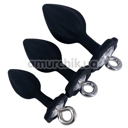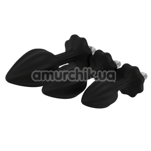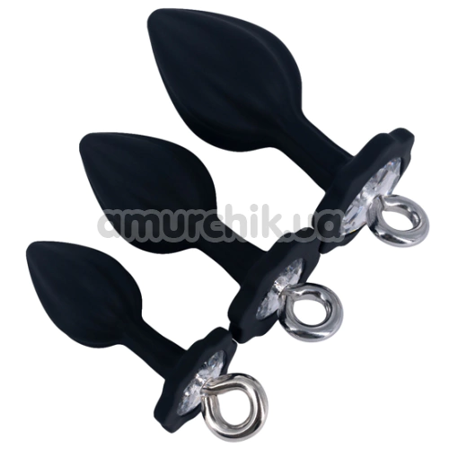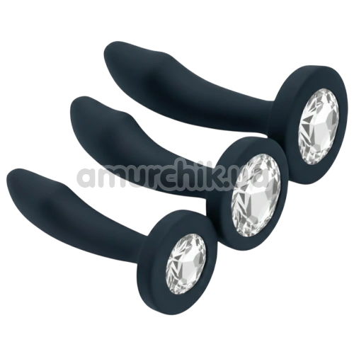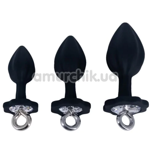Набір анальних пробок з прозорим кристалом Diamond Anal Trainer Kit, чорний