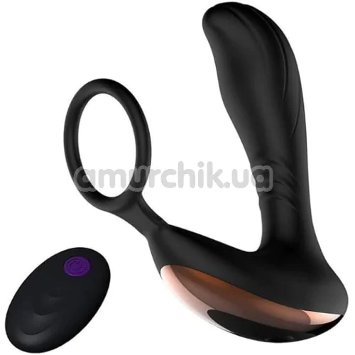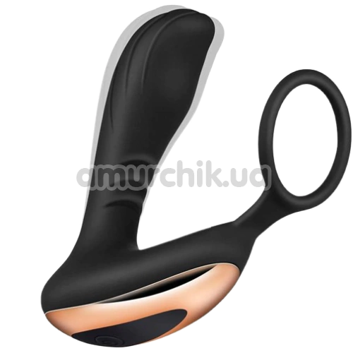 Вібростимулятор простати з ерекційним кільцем Prostate Massager With Cock Ring, чорний