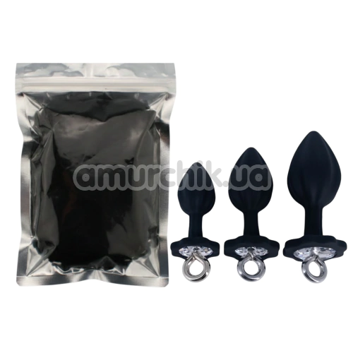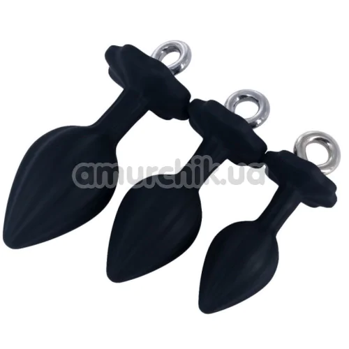 Набір анальних пробок Silicone Anal Plugs With Ring Pull, чорний