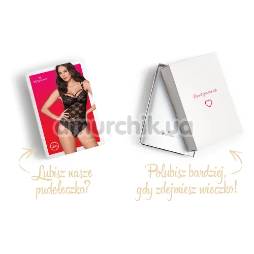 Obsessive - дуже еротичне, напівпрозоре і виконане з мереживною, красивою тканиною боді, яке ідеально обтягне Ваше тіло, підкреслить груди, талію і стегна, роблячи Вас ще більш прекрасною і спокусливою.