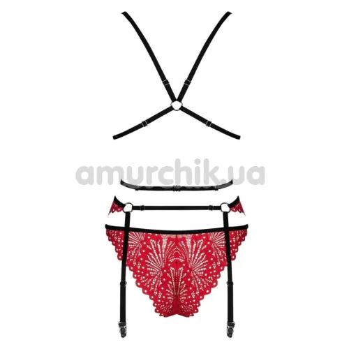 Додати відгук про Комплект Obsessive Mettia, червоний: бюстгальтер + пояс для панчіх + трусики, залишити коментар, запитати